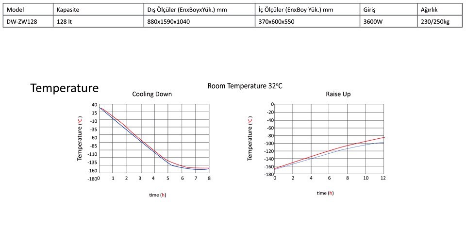 • Mikroişlemci kontrol birimi sayesinde -120/-164 derece aralığında ısı ayarı